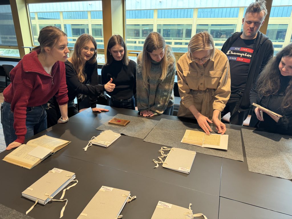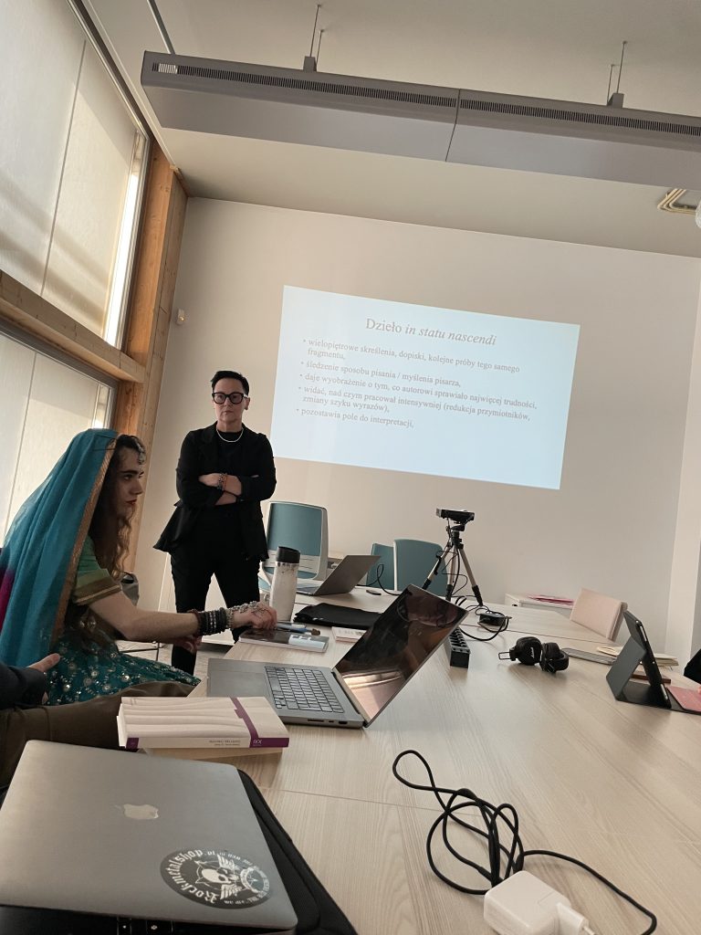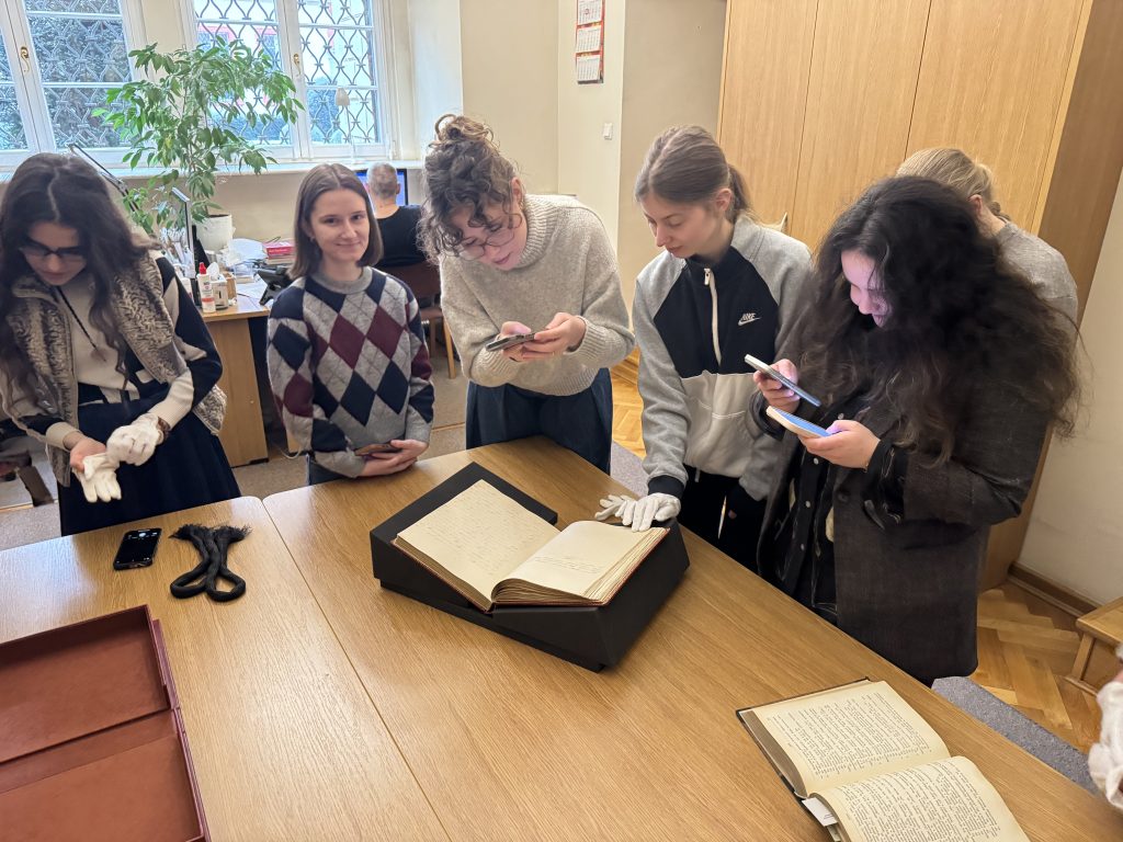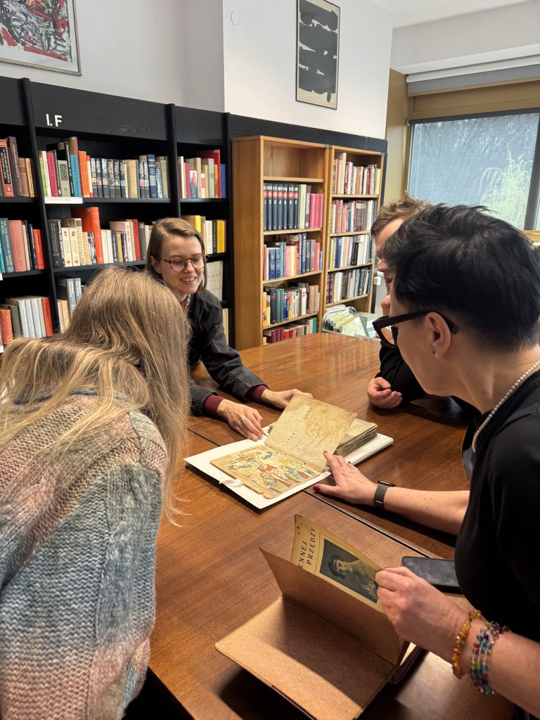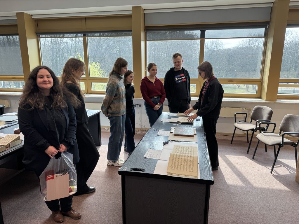 Jak rozpracować XIX-wieczny sztambuch? – zakończenie interdyscyplinarnego projektu prowadzonego przez dr hab. Agnieszkę Kuniczuk prof. UWr oraz dr Grzegorza Joachimiaka a finansowanego z programu Inicjatywy Edukacyjne ze środków Rektora ds. nauczania dra hab. Łukasza Machaja, prof. UWr. Udział wzięli studenci filologii polskiej: Karolina Skrzypczak, Wiktoria Wojciechowska, Sandra Moeglich, Olimpia Goldmann, Kinga Kępa, Lidia Paluch oraz studenci i doktoranci reprezentujący team muzykologów: Marianna Siatkowska, Lalita Czekanowska oraz Antoni Szpakowski.Trwający od listopada 2025 roku projekt realizowały dwie pracownie Uniwerstetu Wrocławskiego: Pracownia Genetyki Tekstu i Transkrypcji Cyfrowych, Wydział Filologiczny UWr (www.krytyka.genetyczna.uwr.edu.pl ) oraz Pracownia Muzykologii Cyfrowej (Instytut Muzykologii UWr). Był to intensywny czas, pełen ważnych i interesujących doświadczeń. Sprawdziliśmy nie tylko to, jak może wyglądać współpraca osób pracujących w wielu dyscyplinach naukowych, ale także możliwości i chęci do przekraczania granic w badaniach filologicznych i muzykologicznych. Działo się wiele, zawiązało się kilka przyjaźni, poznaliśmy wielu ciekawych ludzi i nowe metody badawcze. „Rozpracowując” dziewiętnastowieczny sztambuch Eryka Jachowicza ze zbiorów Zakładu Narodowego im. Ossolińskich dostrzegliśmy, ile tajemnic, ciekawostek i informacji może zawierać niepozorna książka. Rozwijaniu kompetencji i poszerzaniu horyzontów służyły:1. Wykłady prowadzone przez dr Barbarę Łydżbę-Kopczyńską z Wydziału Chemii, dra Rafała Cieślę z Wydziału Kryminalistyki, Eunikę Kupis odkrywającą przed nami tajniki TransLaba – jesteśmy ogromnie wdzięczni za poświęcony czas i dzielenie się wiedzą i doświadczeniami2. Wykłady wprowadzające w tajniki muzykologii i krytyki genetycznej – tu szansę pokazania swoich zainteresowań naukowych mieli prowadzący projekt3. Wizyty w Bibliotece Narodowej im. Ossolińskich oraz Bibliotece Narodowej, gdzie mieliśmy okazję zobaczyć (a nawet dotknąć) rękopisy zarówno z kolekcji Jachowiczów, jak i zbiory muzykologiczne4. Występ na konferencji w Siedlcach reprezentantek Projektu. Kinga Kępa, Marianna Siatkowska, Karolina Skrzypczak, Wiktoria Wojciechowska przygotowały i wygłosiły wystąpienie „Jak rozpracować XIX-wieczny sztambuch? Perspektywy badań interdyscyplinarnych na przykładzie albumu Eryka Jachowicza. Projekt się skończył, a my zostaliśmy z przekonaniem, że warto patrzeć na dziedzictwo kulturowe interdyscyplinarnie. Dziękujemy wszystkim zaangażowanym w projekt!!!Szczególne podziękowania za wsparcie i współpracę:#UCHC #buwr #Ossolineum #BN #katedrakryminalistykiUWr #chemiauwr#przedmiotyponadprogramowe.